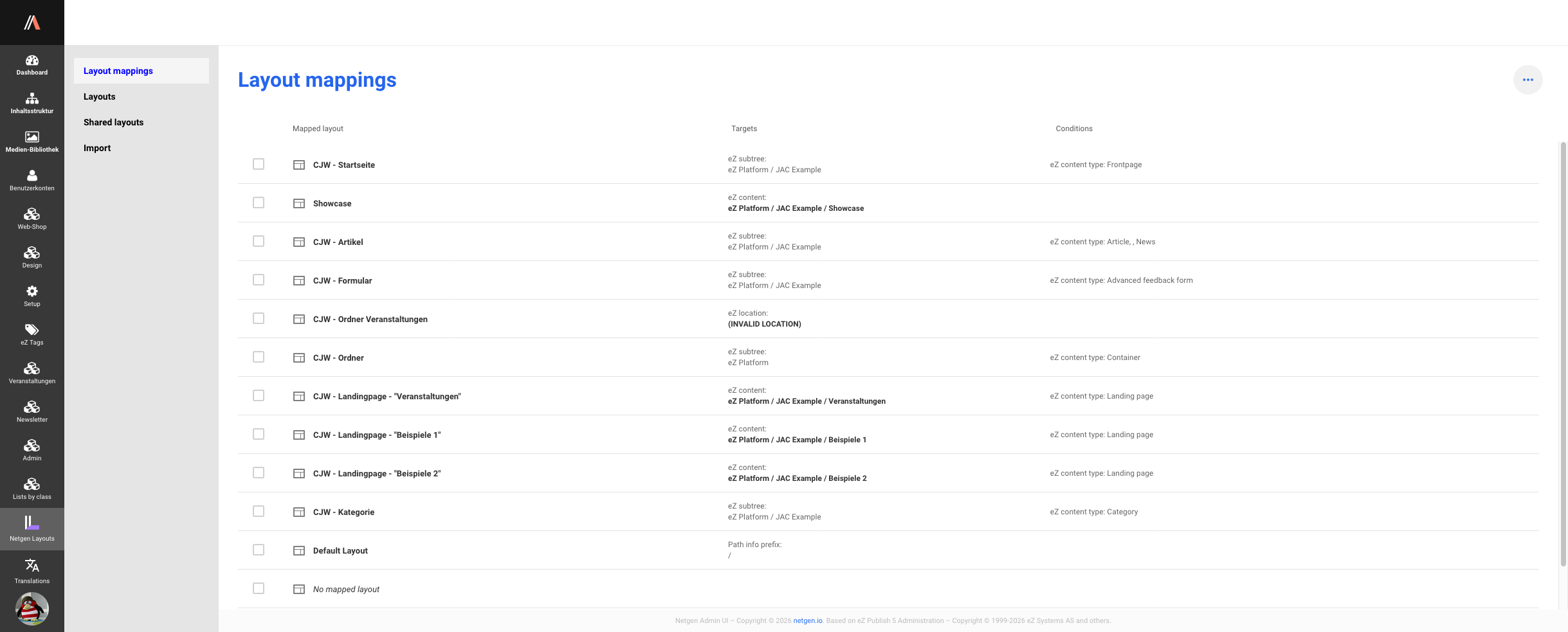 Platform / Screenshots / Exponential Platform Nexus 1.0.0.0.3 Admin Mappings - Netgen Layouts Dashboard Screenshot